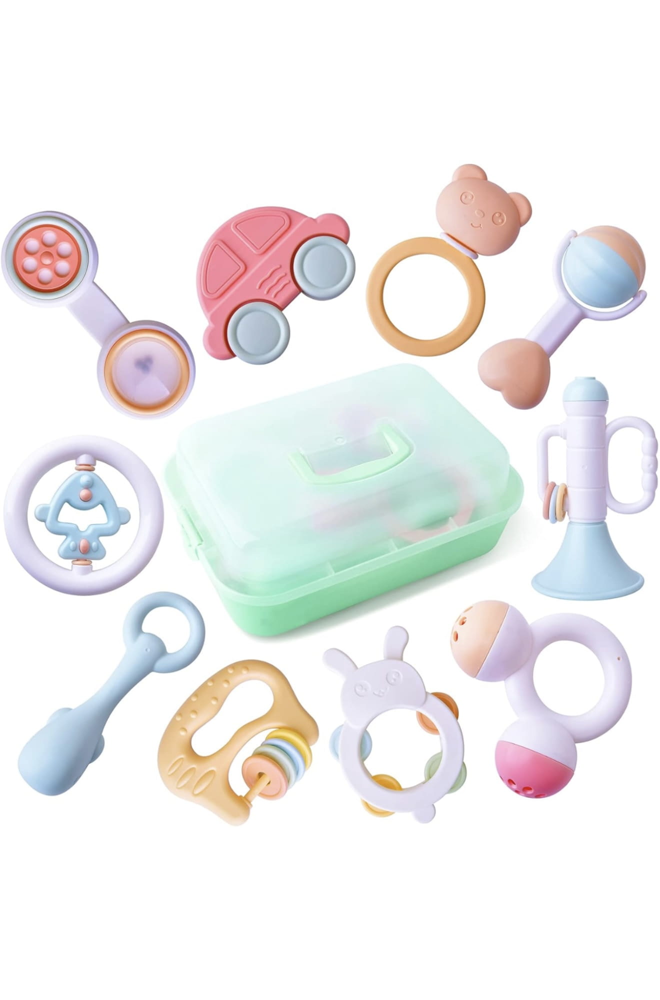 Grzechotka dla niemowląt od 3, 4, 5, 6 miesięcy, bezpieczna i kolorowa zabawka dla niemowląt, idealna dla dziewcząt i chłopców, wspiera motorykę i sensorykę, przyjazna dla środowiska i nie zawiera BPA